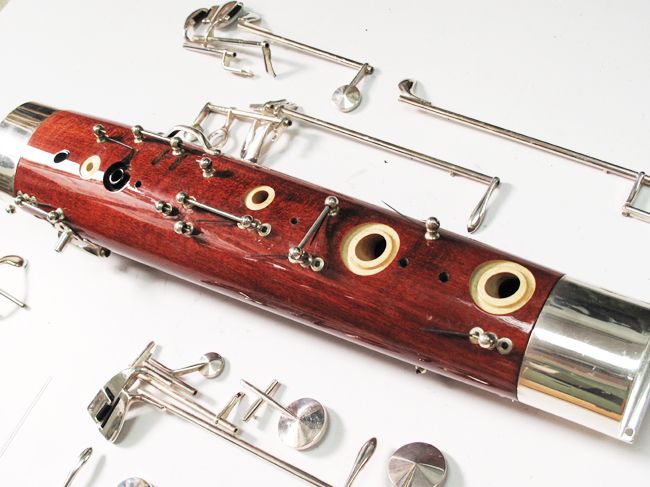 Serwis fagotu zaczynamy od jego oceny w obecności klienta. Sprawdzane są: integralność całego instrumentu, szczelność eski, skrzydła, stopy i rury tenorowo-basowej (brak pęknięć), szczelność otworów i sprawdzenie najczęściej powstających luzów. Następuje wstępna wycena naprawy i omówienie opcjonalnych czynności serwisowych – np. polerowanie klap, wymiana kroków, złocenie napisów.