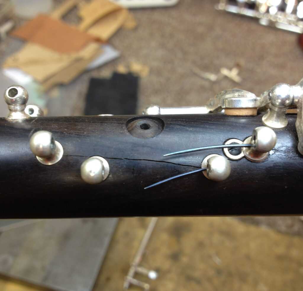 Następnie sprawdzane są uszczerbki drewna w okolicy otworów, jeśli takie są, to kominki otworów zostają odbudowane. Następnie sprawdzana jest szczelność drewna korpusów i ewentualne uszczelnienie pęknięć. Napisy zostają wyczyszczone i ponownie pozłocone, a w przypadku klarnetów z tworzywa klarnet ponownie jest czerniony. Po takiej operacji klarnet odzyskuje pełną sprawność i wygląda znacznie młodziej.